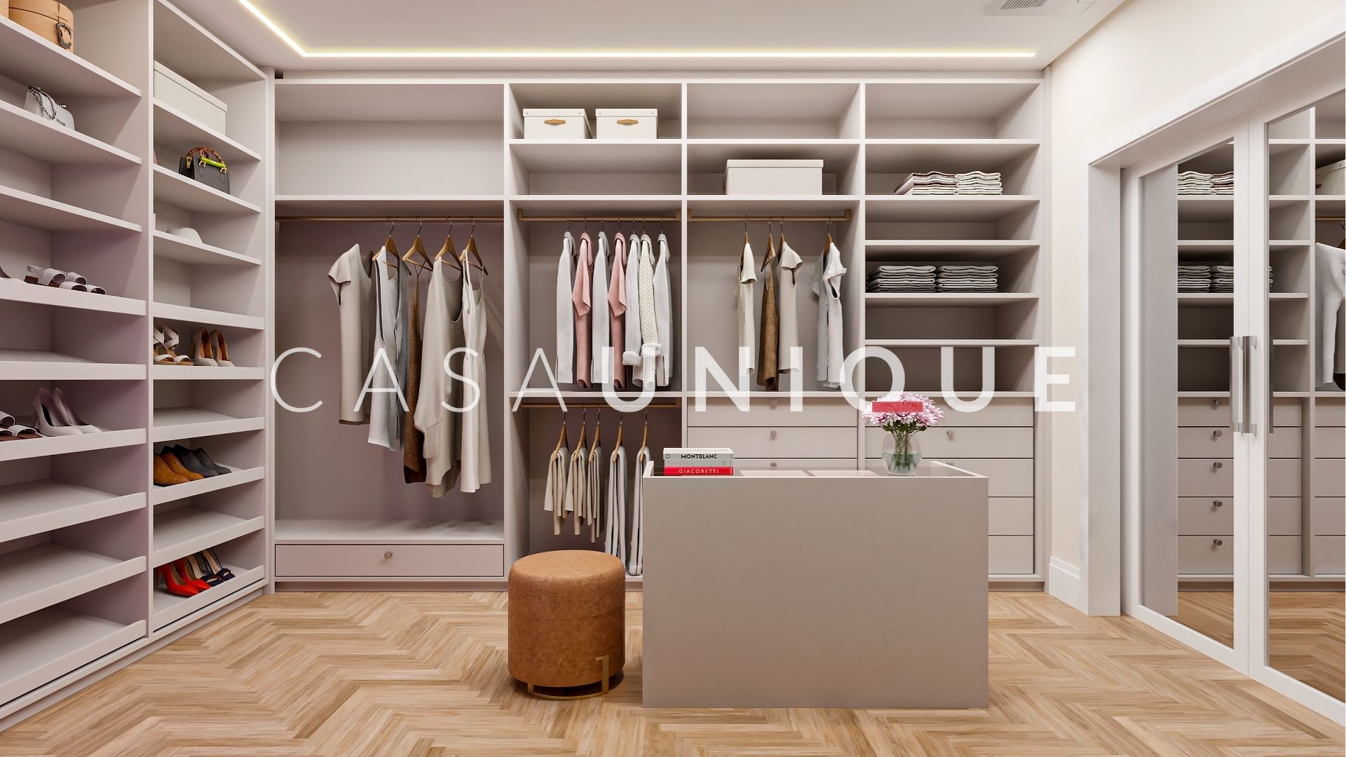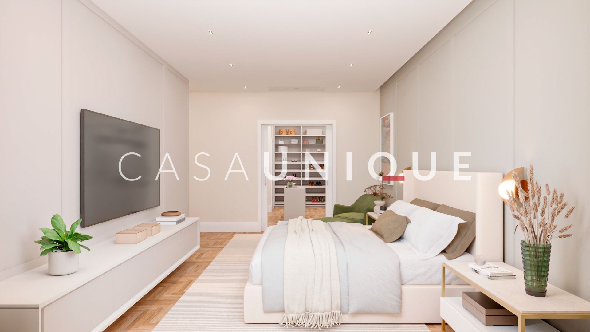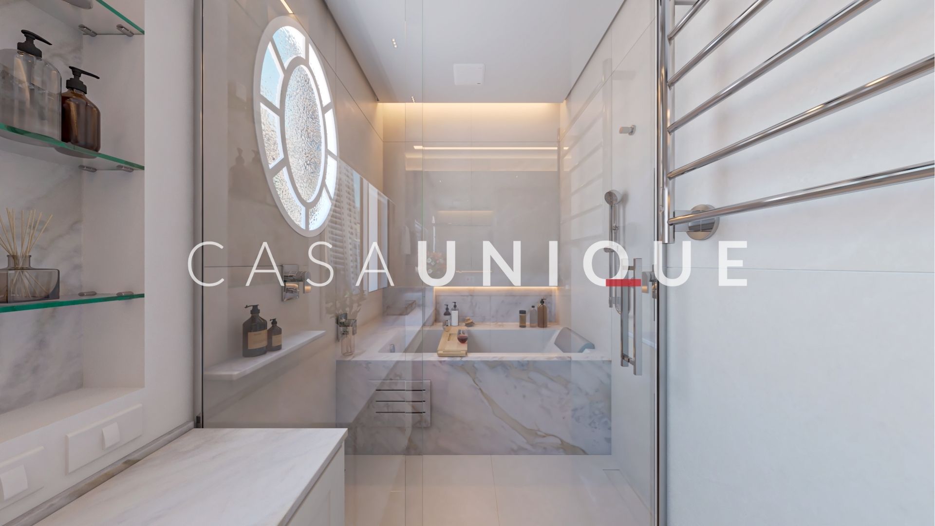 Na área íntima, são quatro suítes amplas e bem distribuídas, todas equipadas com persianas automatizadas em suas janelas. A suíte master é um verdadeiro retiro particular, perfeita para recarregar as energias. Além disso, contempla um walk-in closet com ilha e um banho spa maravilhoso com duas cubas, bancada em mármore branco paraná, dois chuveiros de teto, toalheiro térmico e uma banheira jacuzzi para relaxar após um longo dia.
