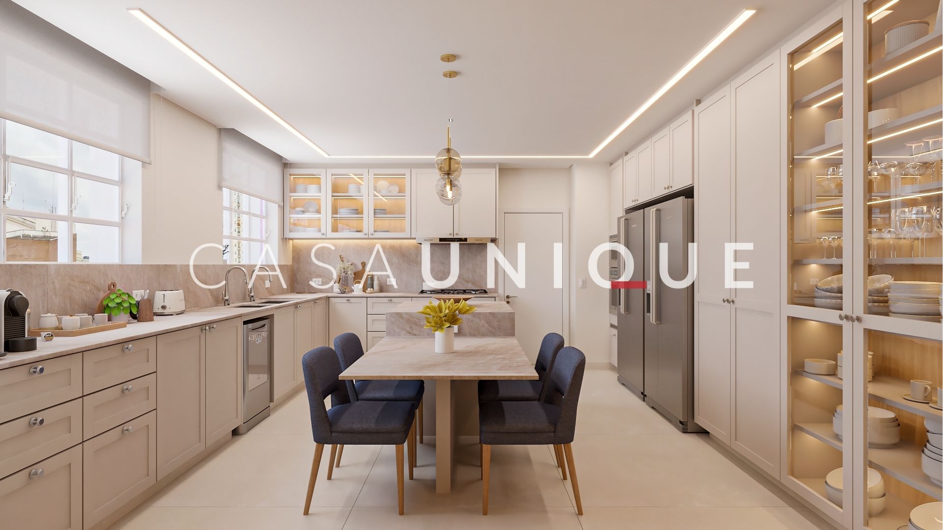 Com 315m², este apartamento foi totalmente reformado pela Casa Unique – Made by Casa Unique, combinando o prestígio de um dos endereços mais desejados do bairro com um projeto sofisticado e funcional. Com um pé-direito alto e uma planta impecável, este apartamento oferece ambientes amplos, integrados e banhados por luz e ventilação natural, graças às janelas generosas.