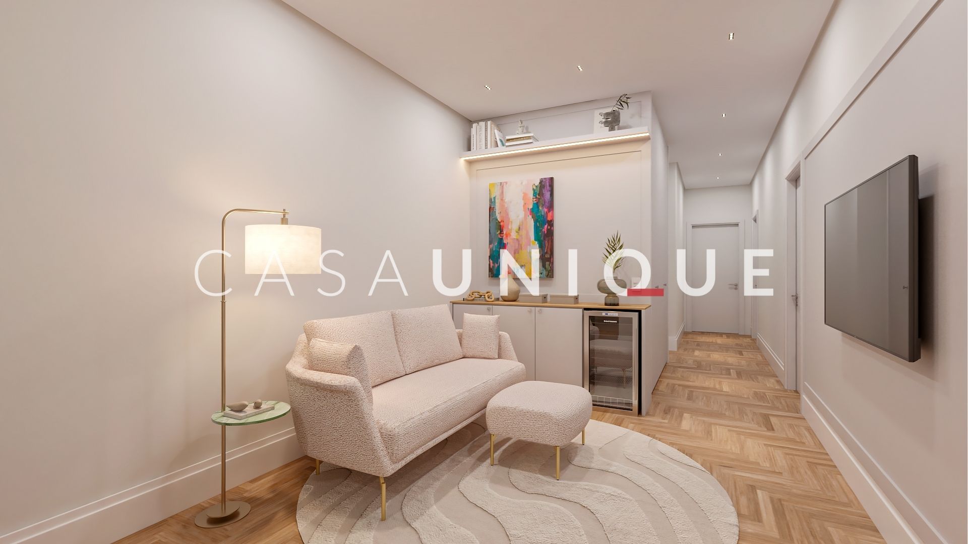 O living espaçoso para quatro ambientes é perfeito para receber a família e os amigos com elegância, realçado por um painel em lâmina de madeira freijó natural que traz aconchego e sofisticação. A sala de TV/home theater possui flexibilidade para instalar uma porta de correr que pode ser integrada ao living, criando um clima fluido e confortável. No living, você ainda encontra um espaço perfeito com infraestrutura para uma adega climatizada.